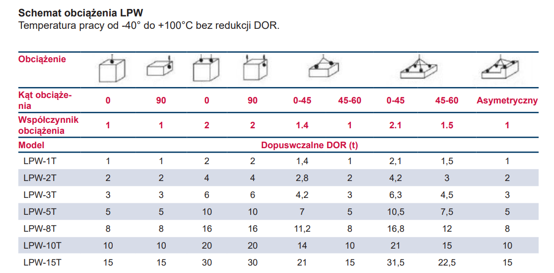 Niezawodność: LPW został zaprojektowany z współczynnikiem bezpieczeństwa wynoszącym co najmniej 4 w zamierzonych kierunkach obciążenia, co zapewnia bezpieczne podnoszenie.