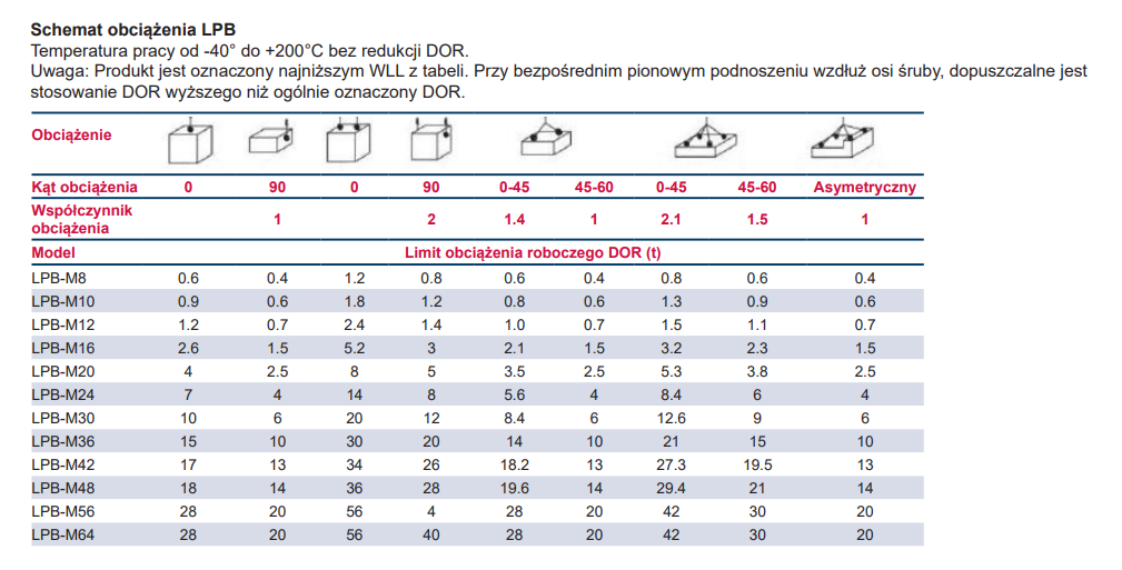 - Dodatkowa informacja: Przed użyciem należy zapoznać się z diagramem DOR, aby wybrać odpowiedni LPB dla danego zastosowania